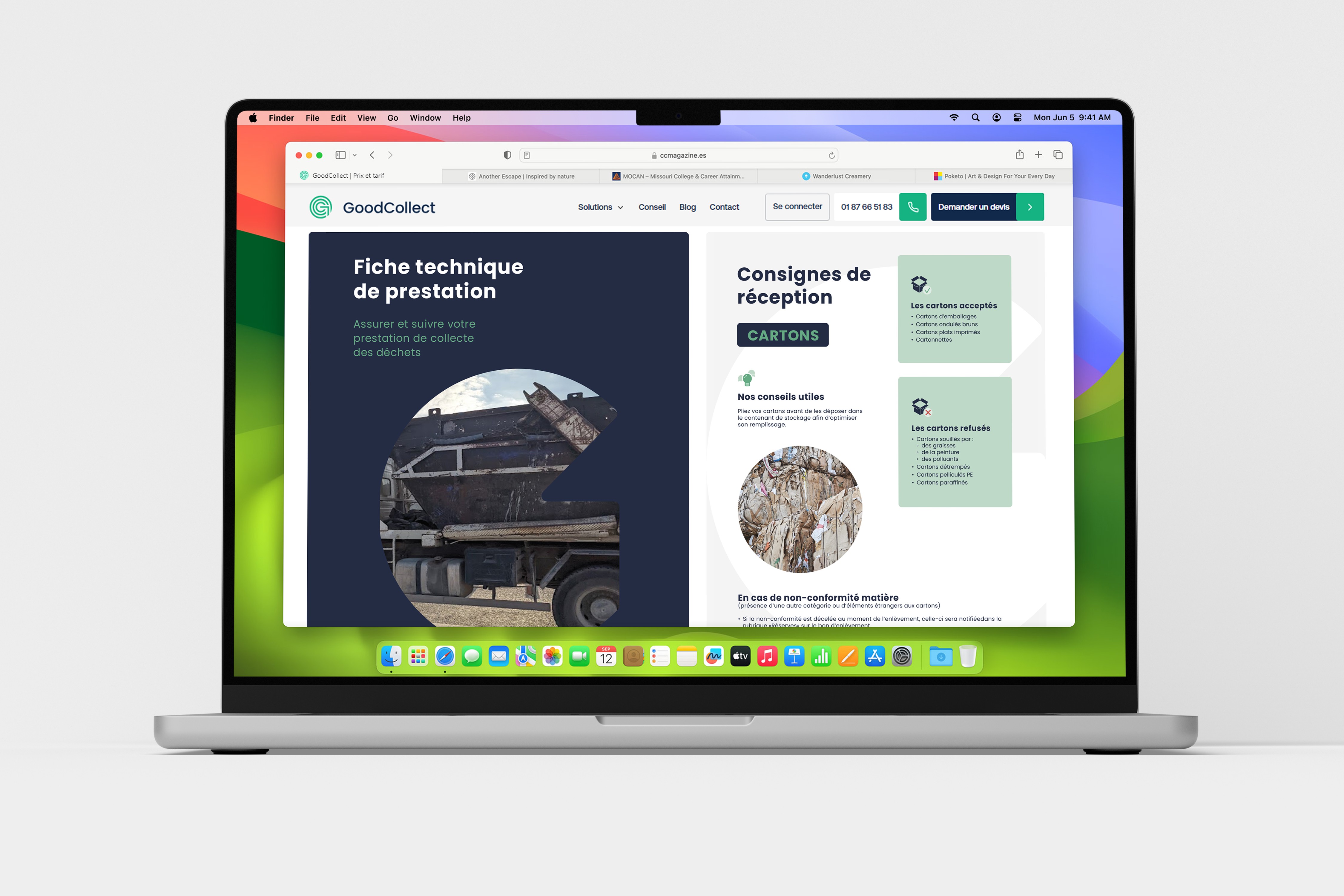 La marque GoodCollect, start-up spécialisée dans la gestion des déchets, nous a confié la refonte de ses documents clients afin de les professionnaliser. Nous avons repensé leur charte graphique en conservant certains éléments clés pour assurer la continuité, tout en y intégrant une nouvelle touche graphique afin d'apporter modernité, clarté et professionnalisme. La mise en page de leurs supports a été repensée pour renforcer la clarté, la cohérence et l'impact visuel de leur communication.