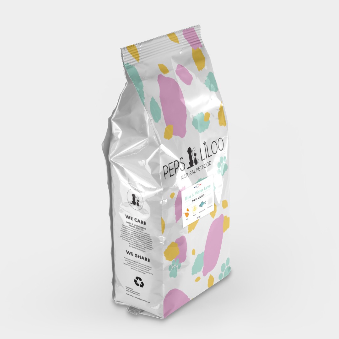 Création d'une identité visuelle forte pour le packaging des sachets de croquettes chiens et chats de la marque Peps & Liloo, dans le cadre du lancement de la marque. L'objectif était de créer une identité visuelle à la fois moderne et engageante, alliant des éléments graphiques épurés et un agencement harmonieux des couleurs.